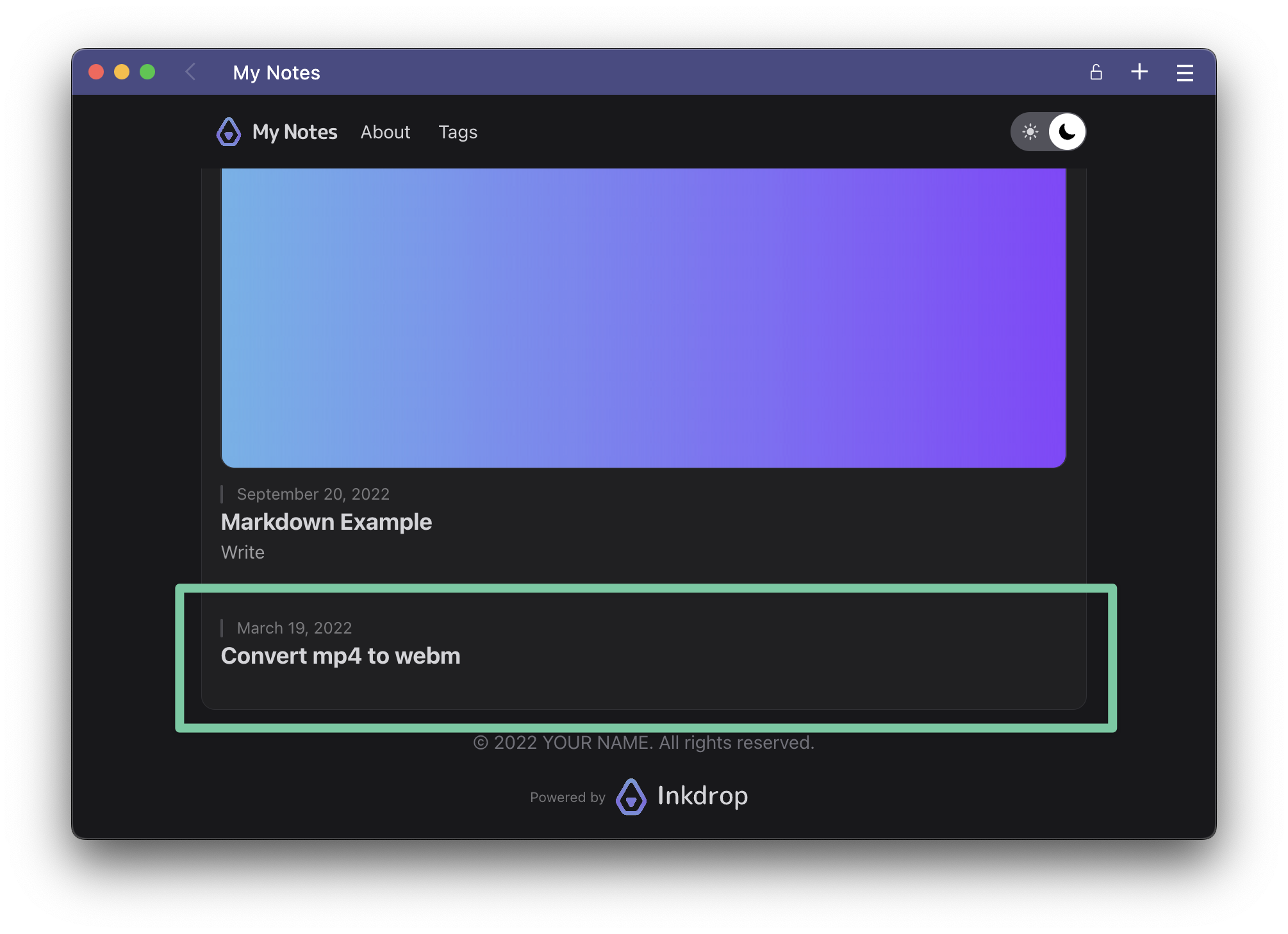 Now, it's ready to export notes with live-export! I've made a blog template so that you can quickly build blogs with live-export: