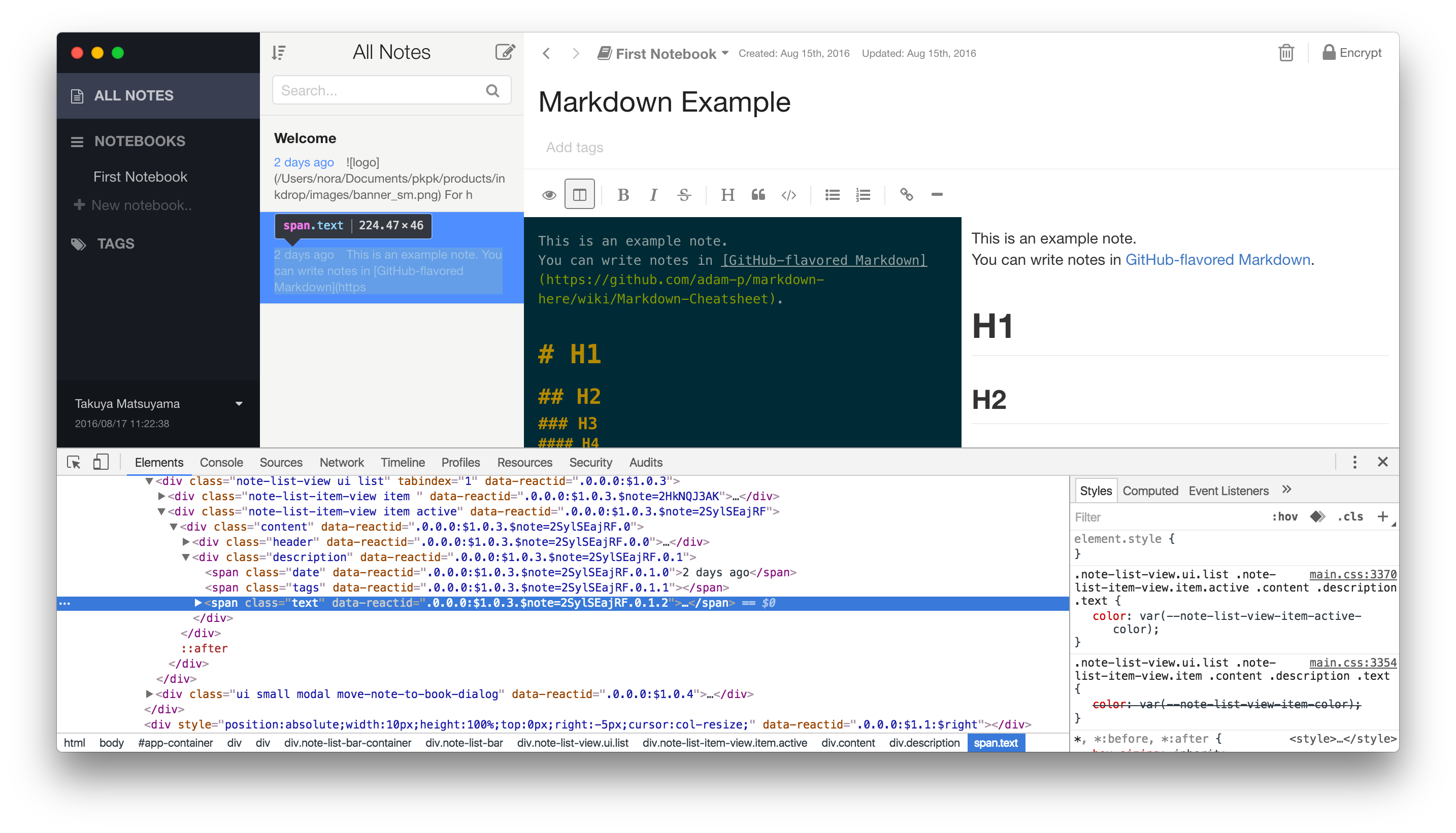 You'll notice a few console.log statements in the code. One of the cool things about Inkdrop being built on Chromium is that you can use some of the same debugging tools available to you that you have when doing web development.